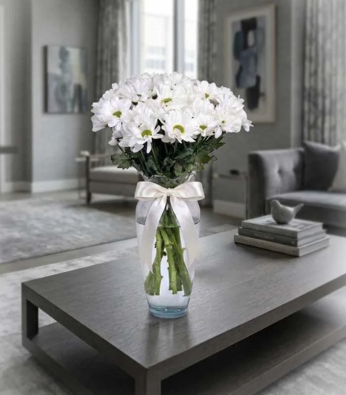 ¿Buscas enviar un detalle de condolencias? Te presentamos el arreglo floral con margaritas blancas. Ideal para enviar como consuelo a familiares de quien ha partido.